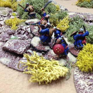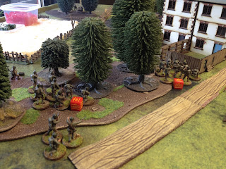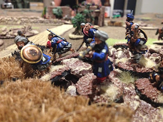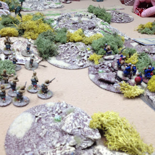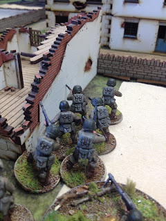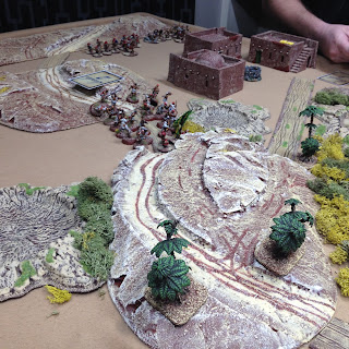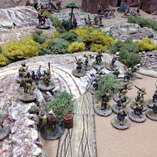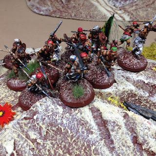 As it was our first game both I and my opponent Dave had a bit of a learning curve coping with the interpretation of the rules, in particular the activation and command aspects. The basic stuff like movement, firing and fisticuffs is really very simple and quickly becomes intuitive. I feel that a couple more games will see us up to speed. Certainly the demo clips put out by the Lardies and viewable on Youtube are excellent to get you started. This is my first foray into card based movement and command mechanisms but I am pleasantly surprised how well they works. There a lot of subtle nuances and clever stuff imbedded in these rules that become apparent as the game progresses. I think these rules admirably fill the gap between small scale hardcore skirmish games with a handful of figures and full scale battles with a cast of several hundreds. An average force is around 50 figures plus a few characters and maybe a gun as an optional addition.