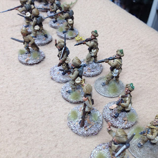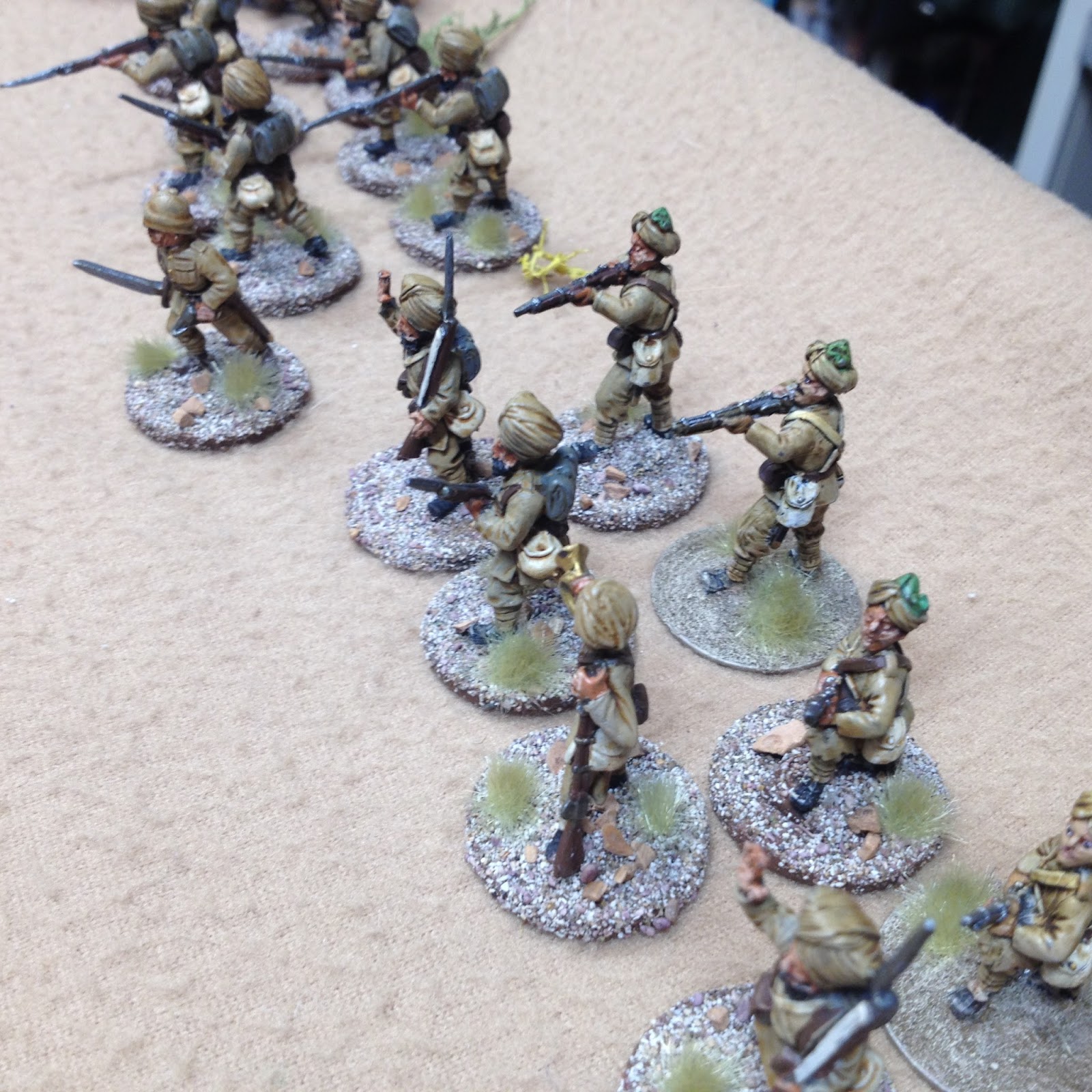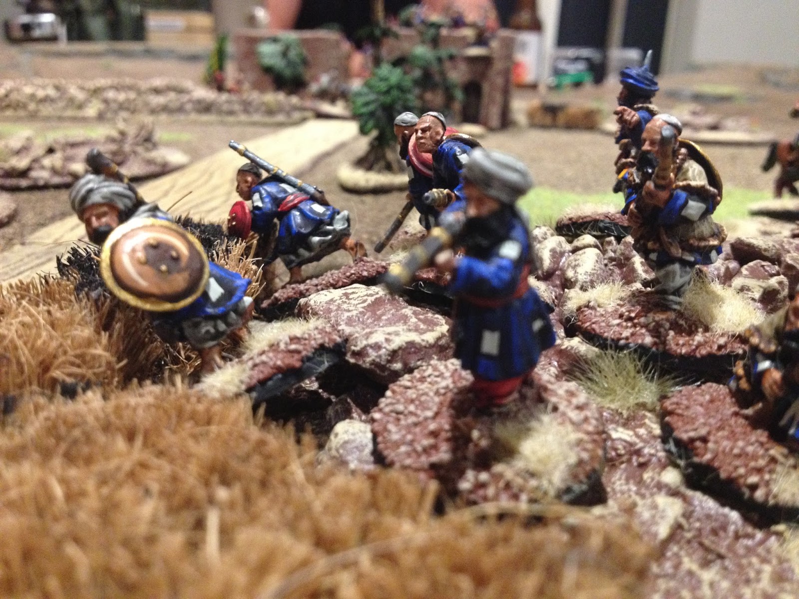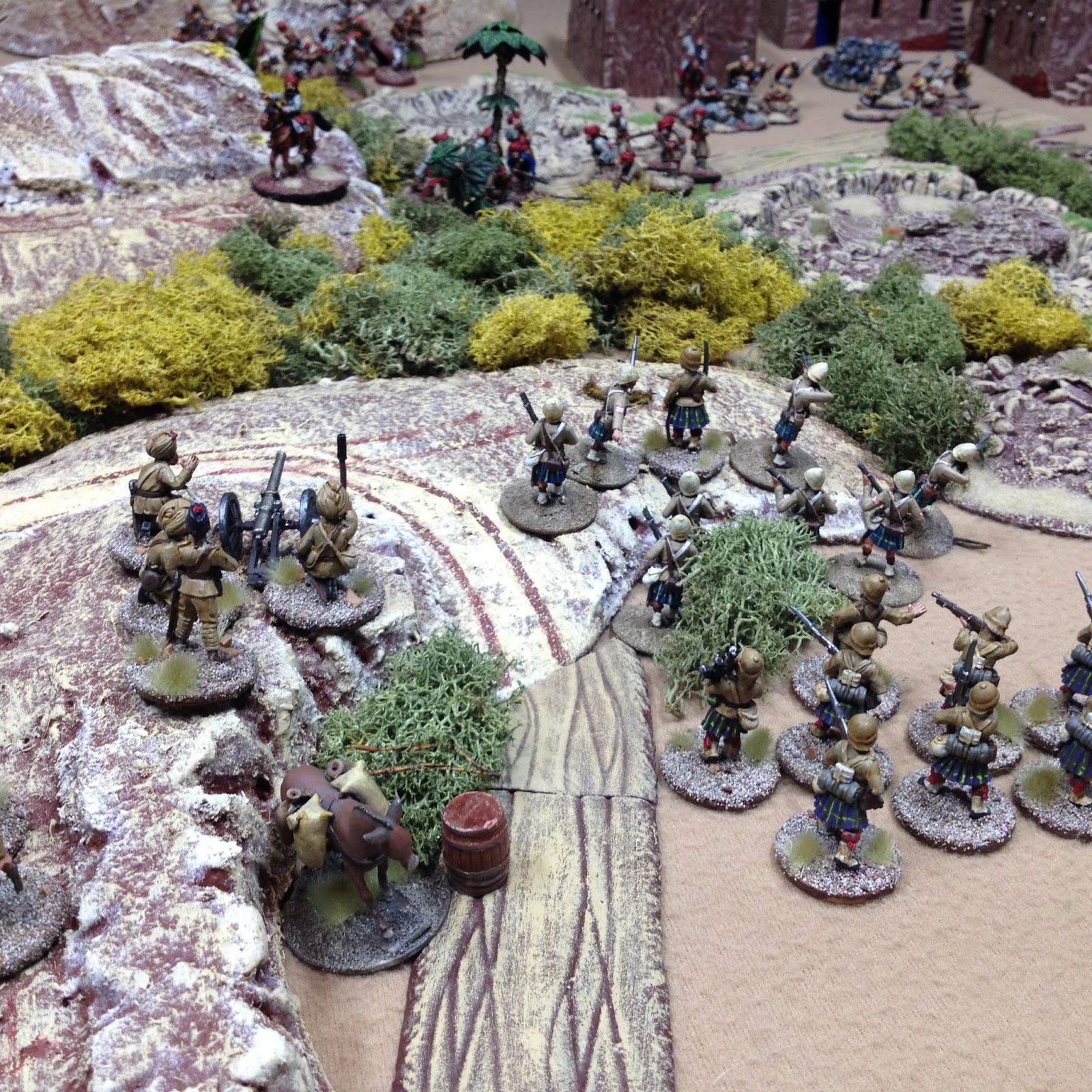 I imagine you could count the number of wargamers who game in 54mm scale on well,..several hands actually, but really, I'm sure the numbers are small compared to their diminutive 28mm practitioners. It does require a somewhat larger table and a lot more paint. I have to say however the pleasure derived from playing with these giants is enormous. I assume it's something to do with nostalgia and diminishing eyesight but I've really taken a liking to these chaps. There's something quaint and charming about a line of steadfast 54mm warriors marching down a road or defending a stone wall much the same as H.G Well's famous Little Wars lead forefathers did. Crikey!!.. gone a bit sentimental and soppy there..whoa! give yourself a good slap and get to the bloody point.