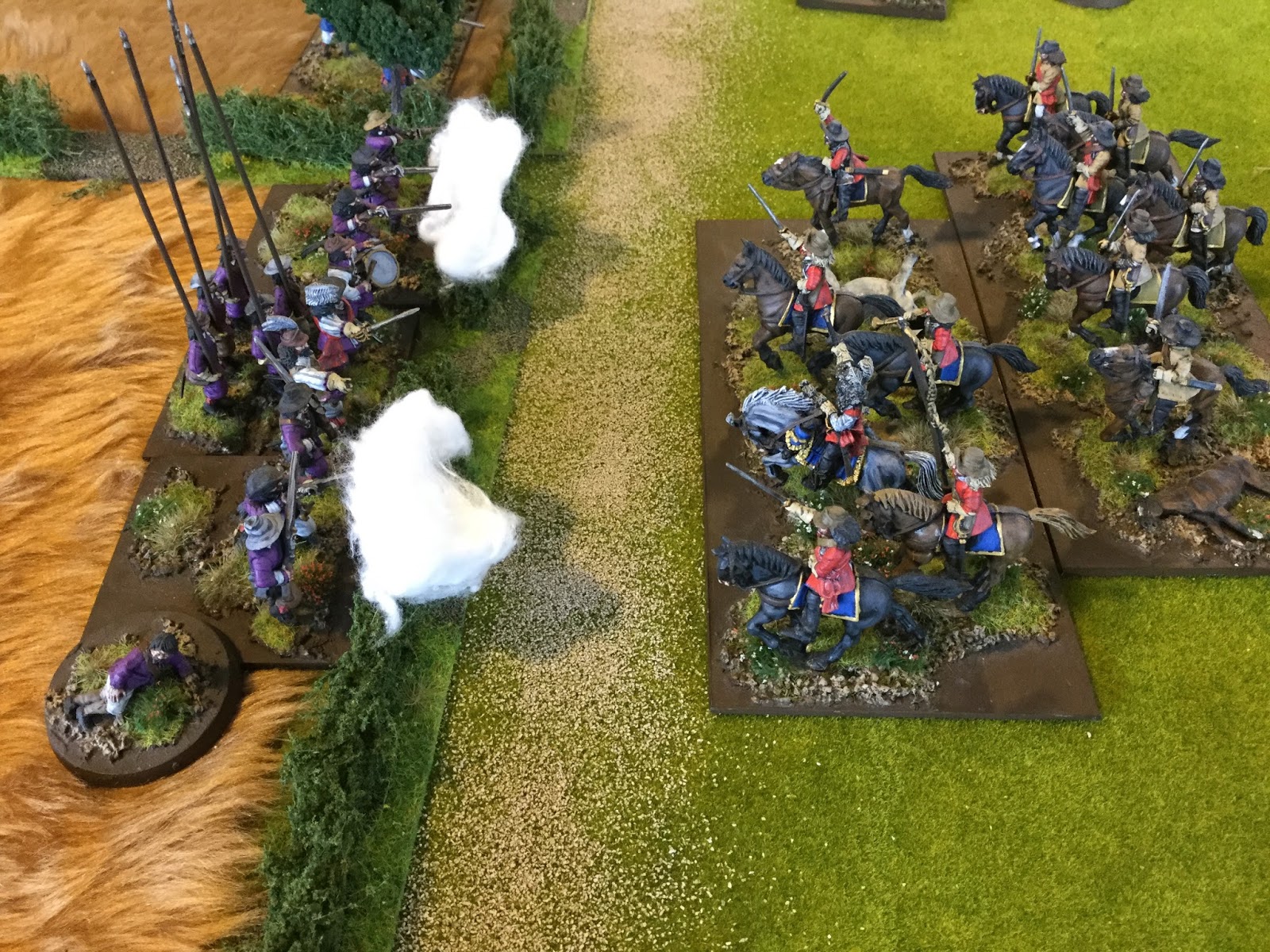 Thanks to continuing rubbish movement rolls the Carolinan Cavalry dithered about finally emerging from the wood and setting off at the canter towards the crossroadswith the intention of cutting down the isolated Maine group behind the stone wall and hopefully push on to take out that damned gun.