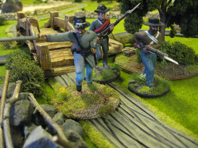 The story goes that a Union Vanguard is forging ahead to secure a clear passage for the main Army and to make contact with enemy forces. Funnily enough the Rebel commander has the same idea. The scene is set for a punch up.