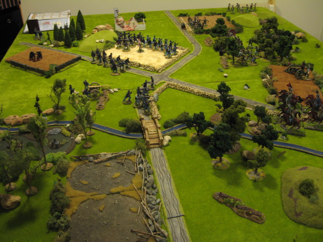 The battlefield is a relatively flat lanscape interspersed with forests, swampy marshland, fields, stone walls a crossroads and intersected East to West by Hickory Creek, currently at a low ebb due to glorious Summer weather.